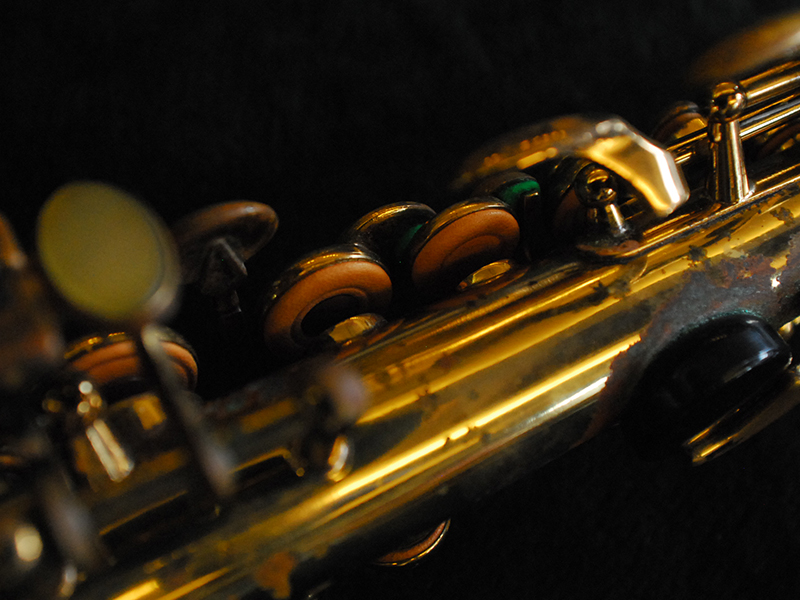 ラッカーの剥離や変色、ベル開口部の修復などがみられますが