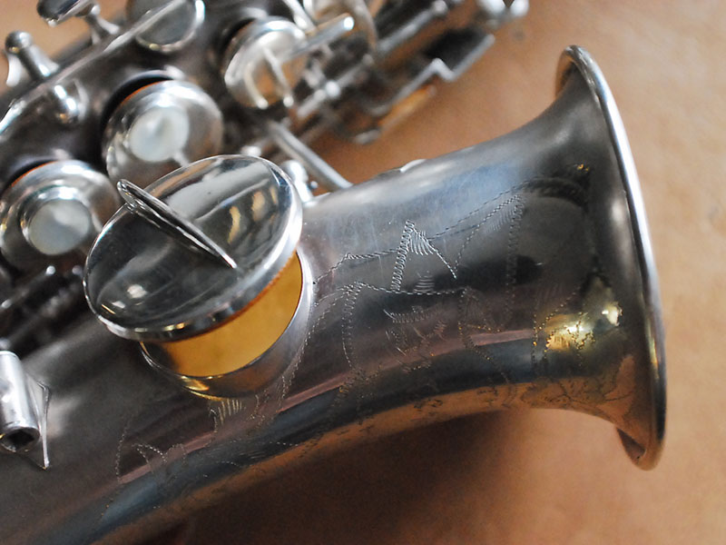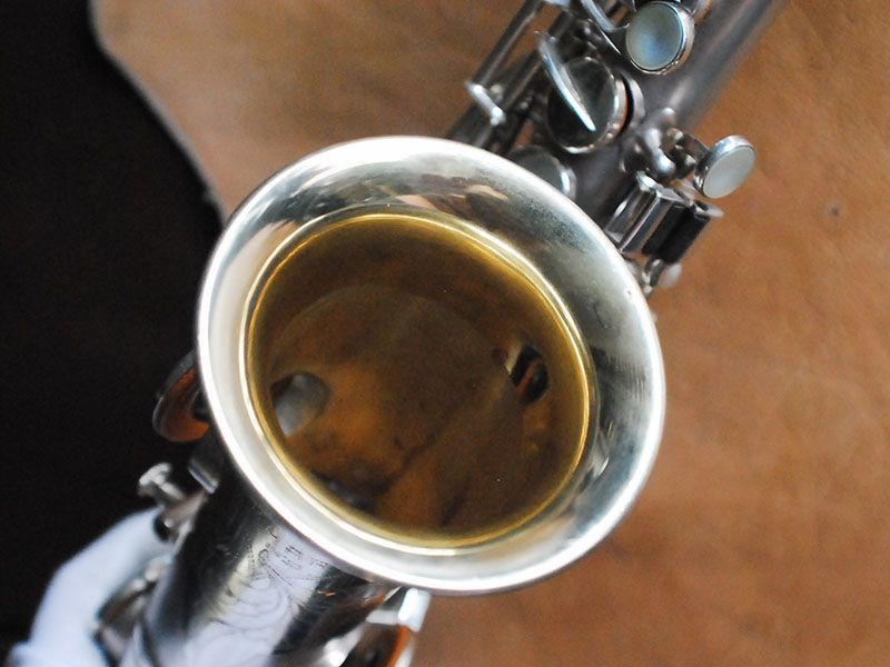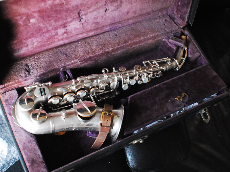 BUESCHER SP CURVED SOPRANO カーブドソプラノサックスBR> シリアルは88千番、サテンシルバーのカーブドです